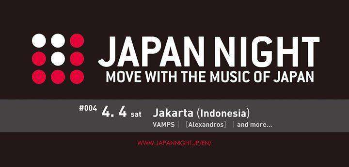 Dengan tema Move with the music of Japan, JAPAN NIGHT Indonesia 2015 adalah konser musik yang awalnya diadakan sebagai kegiatan musik penutup dari beragam band papan atas Jepang termasuk L’Arc-en-Ciel, di Kokuritsu Kyogijo (national Olympic Stadium at Kasumigaoka Shinjuku Tokyo, Japan) pada bulan Mei 2014 lalu, kemudian disusul dengan JAPAN NIGHT di TIMM (Zepp Divercity Tokyo Koto Tokyo, Jepang) dan kemudian diluncurkan ke pasar manca negara. JAPAN NIGHT pertama di luar Jepang pada tahun 2015 ini akan diadakan di Jakarta pada 4 April 2015 mendatang di The Kasablanka – Kota Kasablanka Mall Jakarta kemudian dilanjutkan dengan yang kedua di Taiwan pada tanggal 23 Mei 2015.