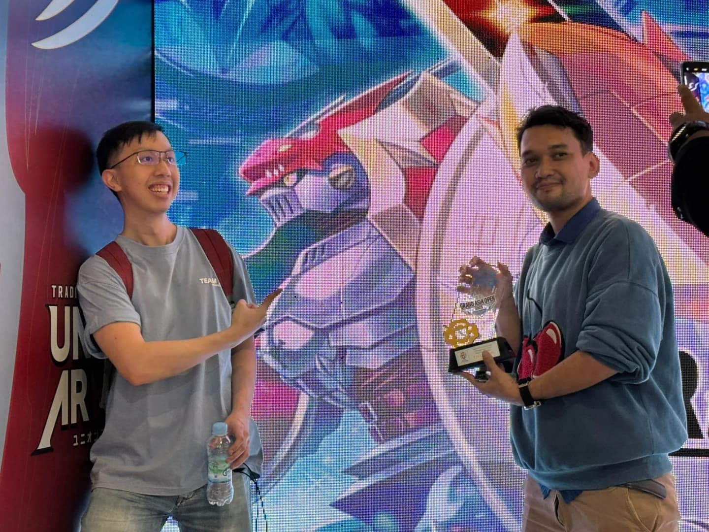 Dengan menggunakan deck Hououmon (Digimon berbentuk burung phoenix), Karsyah berhasil menjadi juara pertama dan mengamankan kartu juara (champion card) eksklusif yang hanya tersedia dua di Indonesia. Ia juga berhak atas trofi/medali kehormatan dan slot bertanding internasional di Jepang. Sementara juara kedua, Arbi, akan berlaga di Thailand.