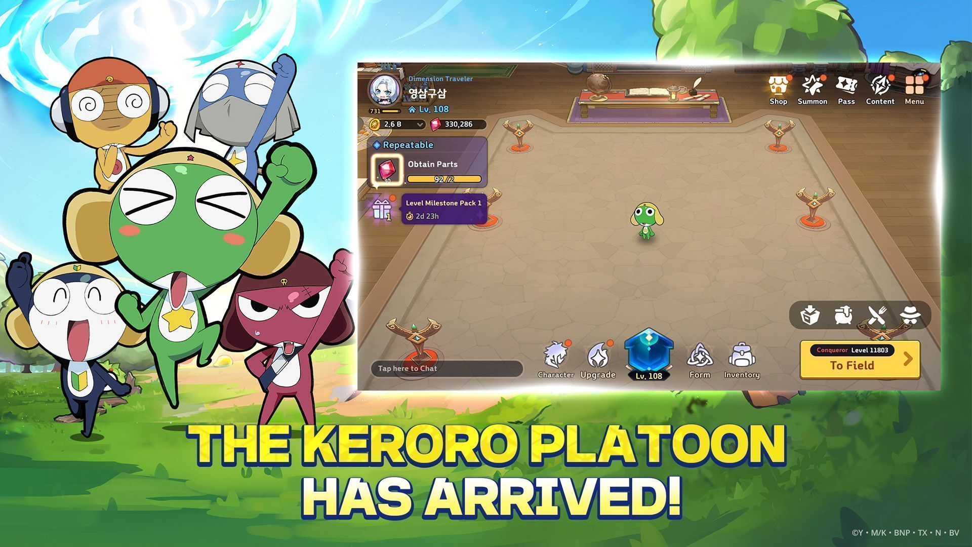 Pada kolaborasi ini, Sersan Keroro bersama keempat anggota peletonnya—Giroro, Tamama, Kululu, dan Dororo—bergabung ke dalam dunia Soul Strike sebagai Ally mythical. Ciri khas masing-masing karakter diadaptasi dengan baik melalui Skill dan Treasure mereka. Contohnya, Keroro dengan KinKin Keronpa miliknya, dan Giroro dengan Berserk Mode-nya. Setiap karakter juga hadir dengan Treasure khas mereka: Dororo’s Katana, Tamama’s Snacks, dan Kululu’s Laptop. Salah satu teknik paling kuat dari dunia Sersan Keroro, One-in-a-Trillion Hellmageddon, tersedia sebagai Skill kolaborasi dan Kero Ball yang ikonik juga hadir sebagai Relic baru.