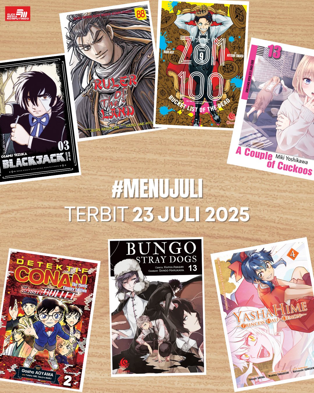 Melalui akun media sosialnya, penerbit Elex Media Komputindo memberikan bocoran mengenai sejumlah komik yang rencananya akan diterbitkan pada minggu keempat bulan Juli 2025. Beberapa judul ada yang merupakan seri atau volume baru ataupun seri yang diterbitkan ulang. Jika tidak ada halangan, maka komik-komik ini akan terbit pada tanggal 23 Juli 2025. Inilah bocoran komik Juli 2025 (minggu keempat):