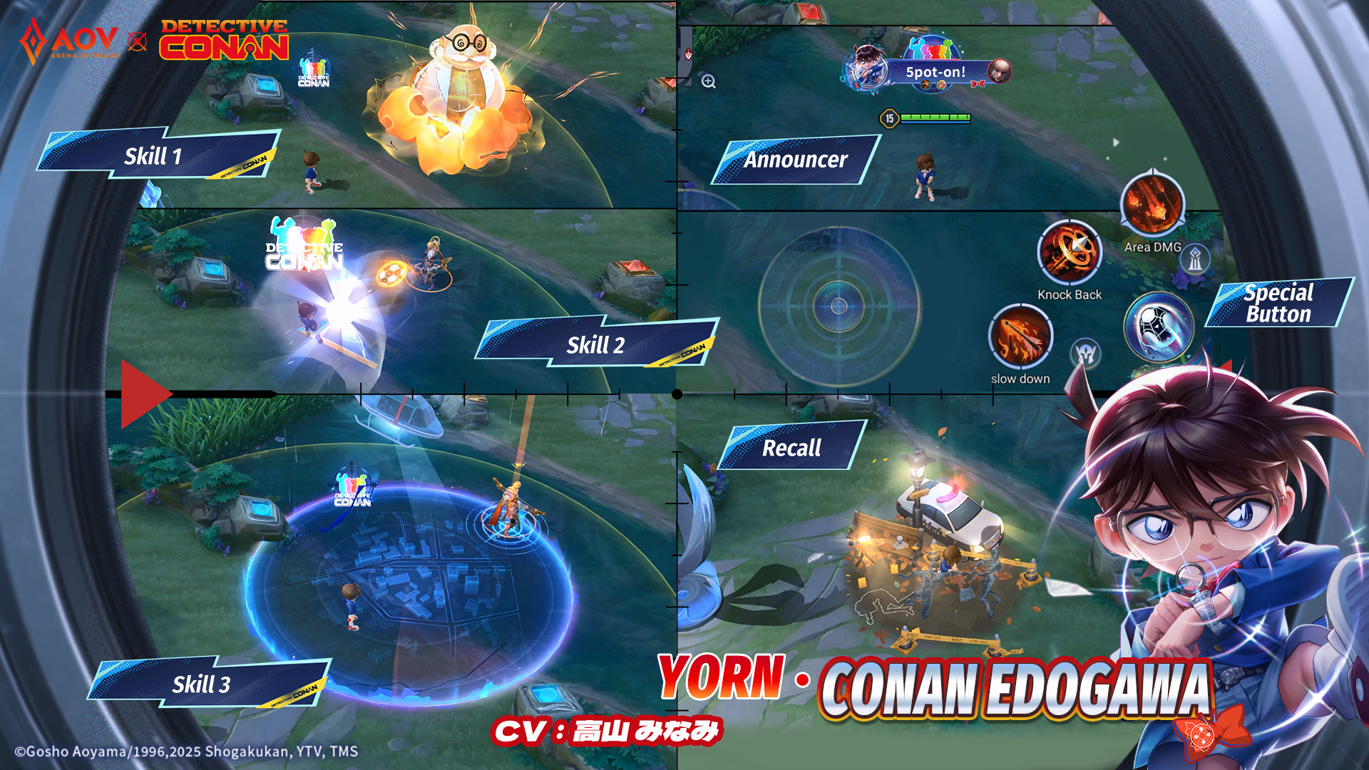 - Conan Edogawa hadir sebagai Yorn: Dengan efek skill yang penuh dengan detail yang kaya dan sentuhan visual yang memukau seperti balon Profesor Agasa, tendangan bola api, aksi pengejaran helikopter, hingga animasi recall yang memperlihatkan aksi Conan mengejar pelaku dengan skateboard-nya! Pemain juga bisa mendapatkan Victory Animation Eksklusif yang dramatis. Conan Edogawa mulai bisa digunakan oleh pemain mulai 1 – 31 Agustus 2025.
