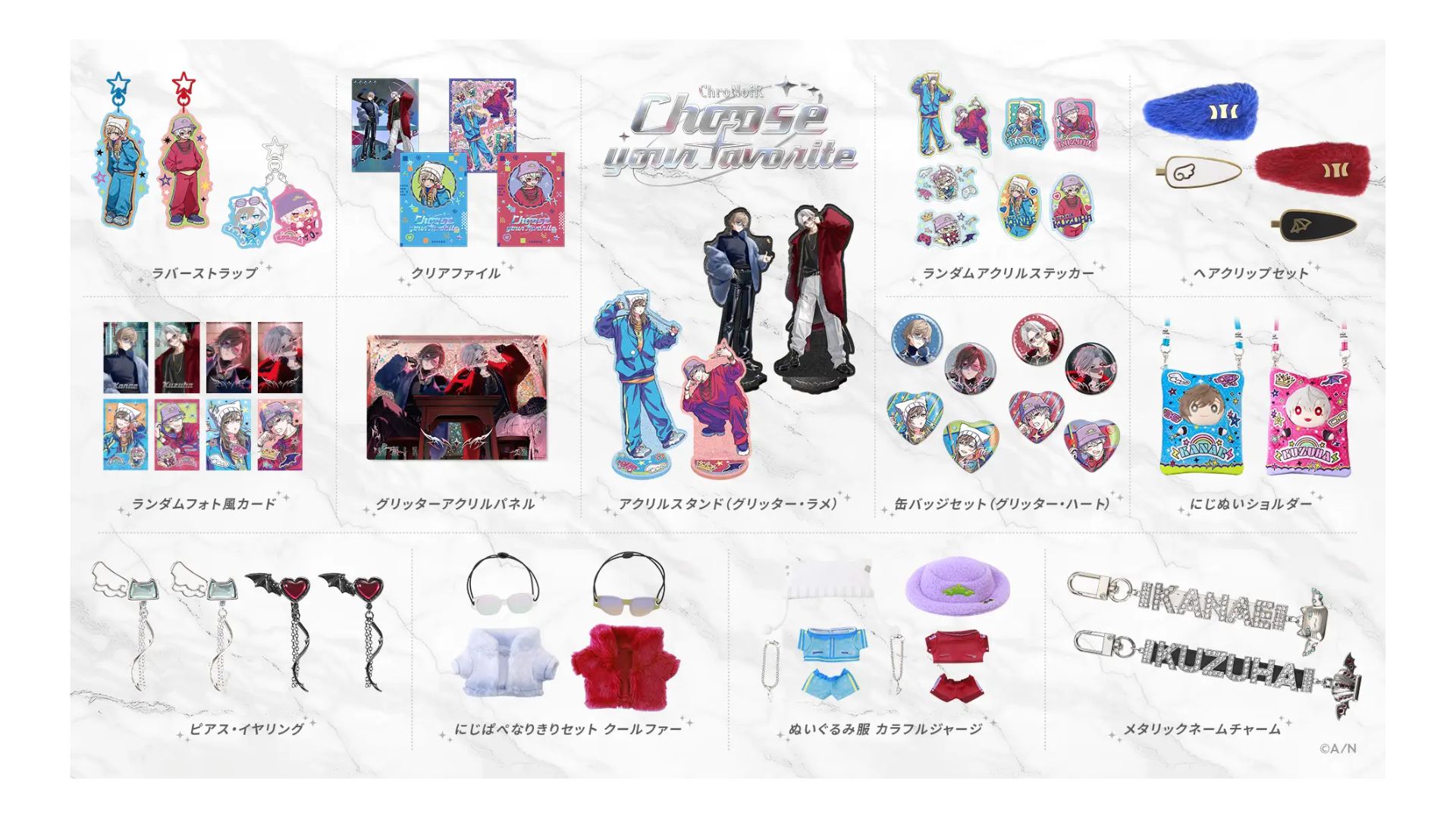 ANYCOLOR Inc. telah mengumumkan penjualan lini merchandise baru untuk unit VTuber NIJISANJI, ChroNoiR. Koleksi yang diberi nama “Choose your favorite” ini akan menampilkan kedua anggota, Kanae dan Kuzuha, dalam balutan dua kostum yang berbeda. Penjualan merchandise ChroNoiR ini akan dimulai pada hari Rabu, 10 September 2025, pukul 16.00 WIB.