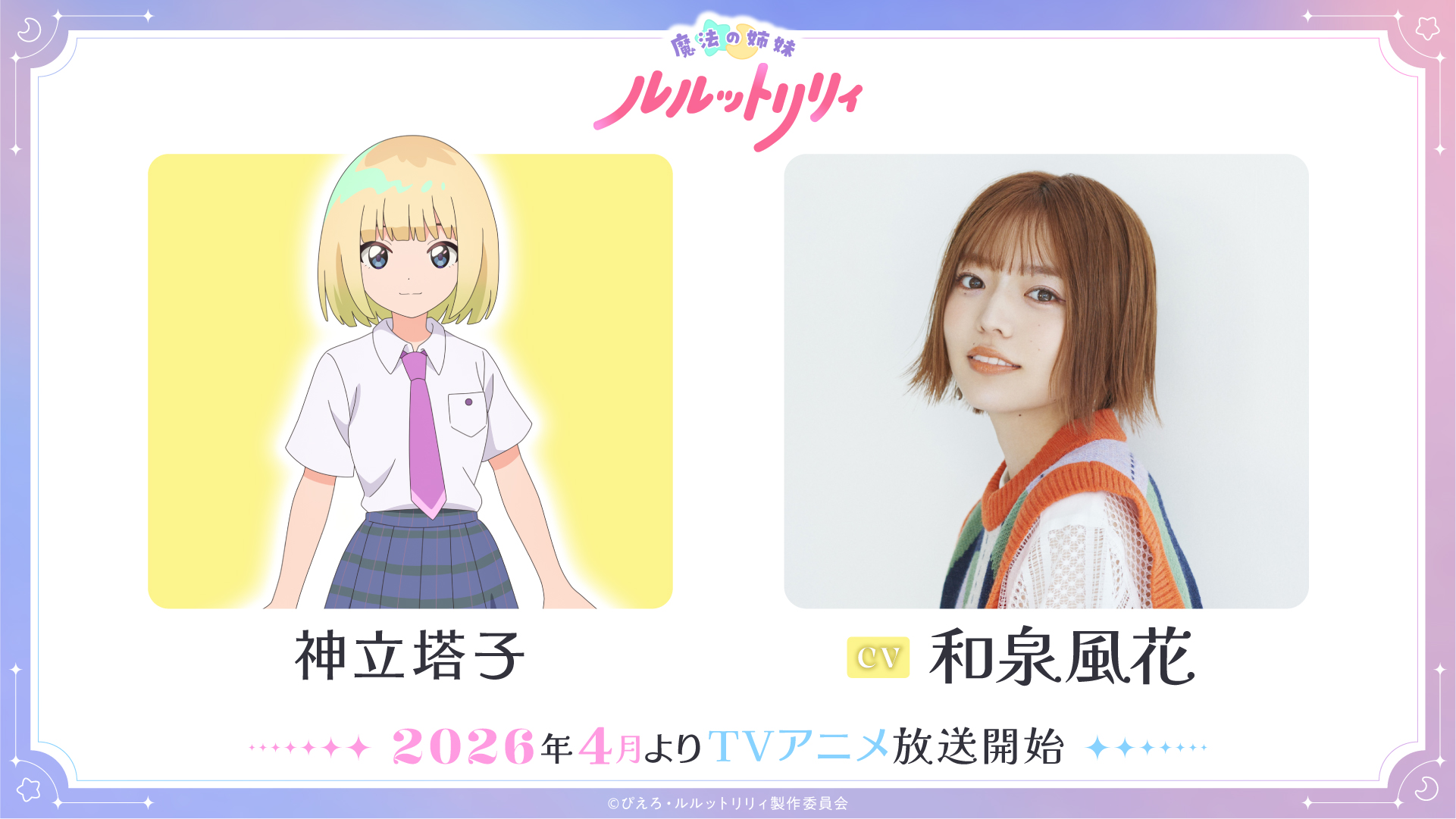 Sebagaimana telah diberitakan sebelumnya, Studio Pierrot saat ini tengah mengembangkan proyek anime Mahou Shoujo terbarunya. Proyek ini akan menjadi proyek terbaru dari Pierrot Magical Girl Series setelah Fancy Lala yang dirilis pada tahun 1998. Proyek ini sendiri diumumkan seiring dengan perayaan 40 tahun dari episode terakhir anime Creamy Mami. Proyek anime Mahou Shoujo terbaru ini sendiri akan diberi judul Maho no Shimai Lulutto Lily (Magical Sisters Lulutto Lily). Kini diumumkanlah bahwa anime ini akan dirilis pada bulan April 2026 mendatang. Intip video teasernya berikut ini: