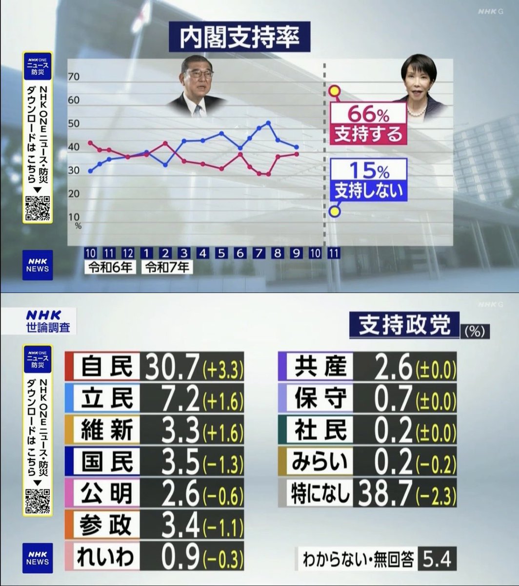 Peningkatan dukungan ini juga selaras dengan hasil survei NHK yang mencatat 66% tingkat kepercayaan terhadap pemerintah, menunjukkan antusiasme publik terhadap arah baru politik Jepang di bawah kepemimpinan Sanae Takaichi.