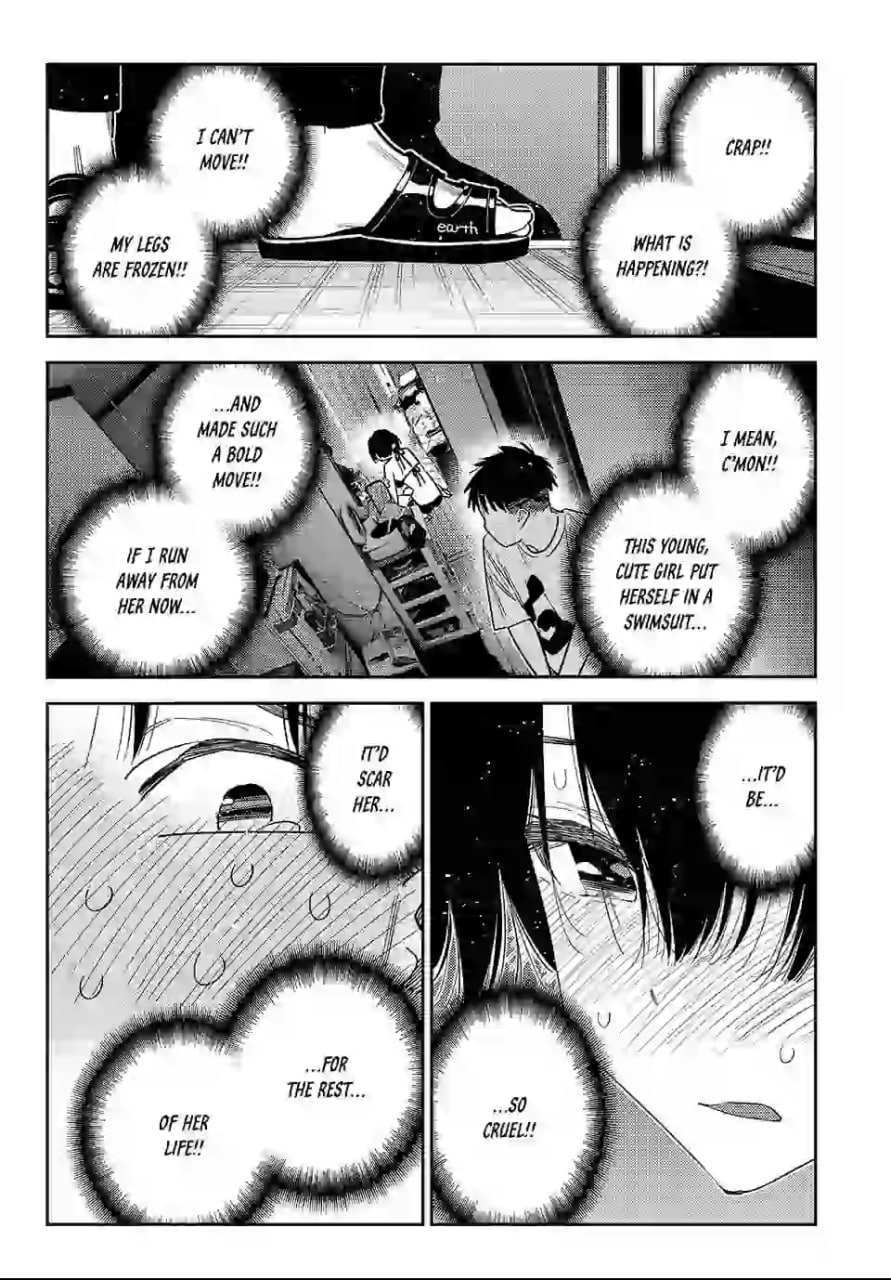 Melihat permintaan itu, Kazuya panik bukan main dan mencoba kabur dari apartemennya sendiri. Ruka yang sudah telanjur membuka diri memohon agar Kazuya tidak pergi, karena itu akan menjadi pukulan mental yang besar. Bab ini memperlihatkan betapa putus asanya Ruka—sesuatu yang kembali menyoroti dinamika cinta rumit khas Kanojo Okarishimasu.