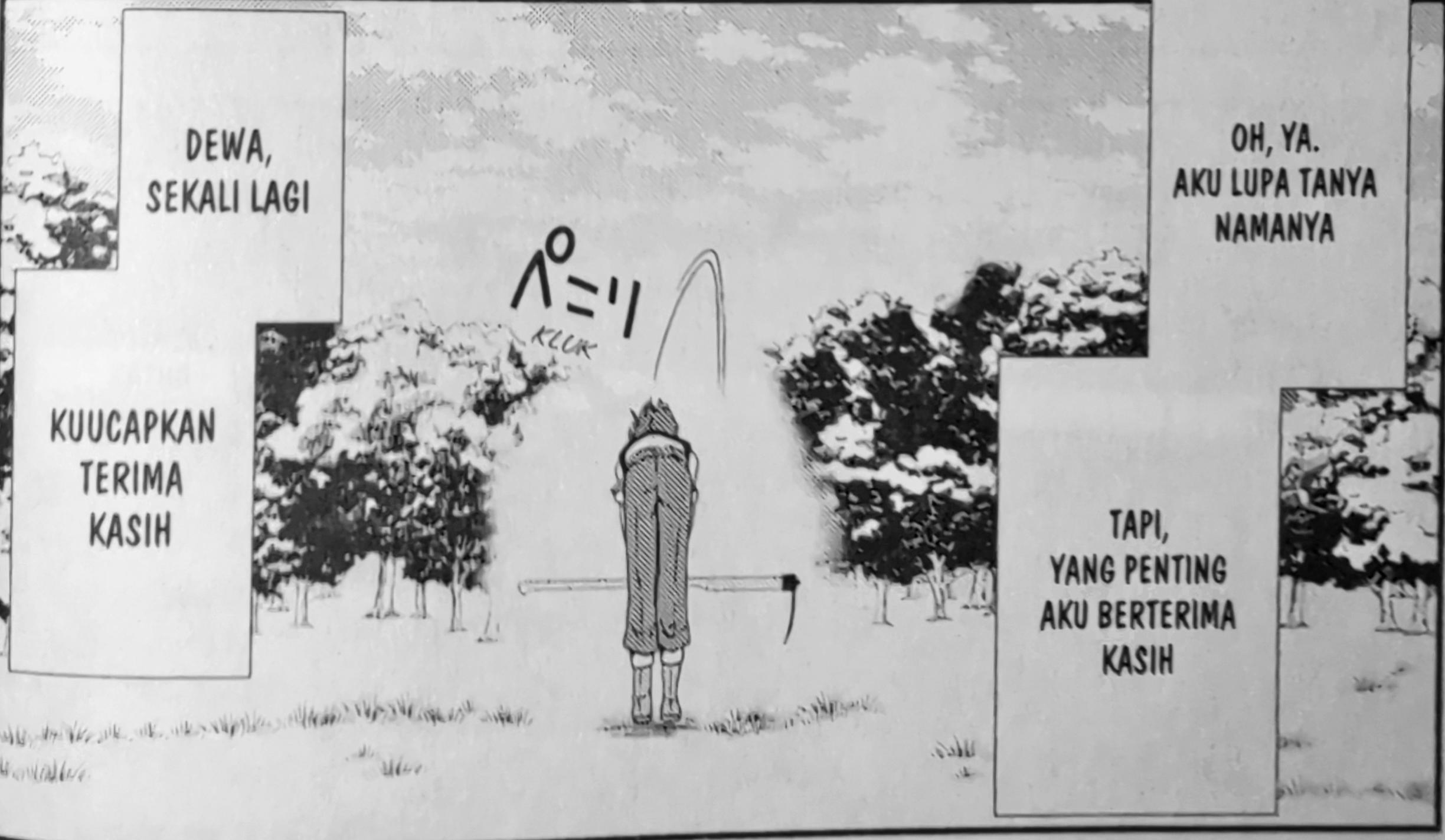Tapi bukan berarti itu hal yang buruk, karena yang tidak dapat kalian prediksi di sini adalah bagaimana komik ini mampu menggambarkan suasana dengan baik. Di sini bukan hanya sang protagonis yang difokuskan tapi sering kali karakter lainnya hadir untuk meramaikan panel agar terasa lebih hidup. Momen interaksi sederhana seperti sang protagonis mencoba meminum bersama dengan hewan “peliharaan”nya meski terasa sederhana tapi mampu membuat komik ini terasa hidup. Setidaknya kalian akan merasakan bahwasannya tidak ada karakter sampingan yang benar-benar “sampingan”.