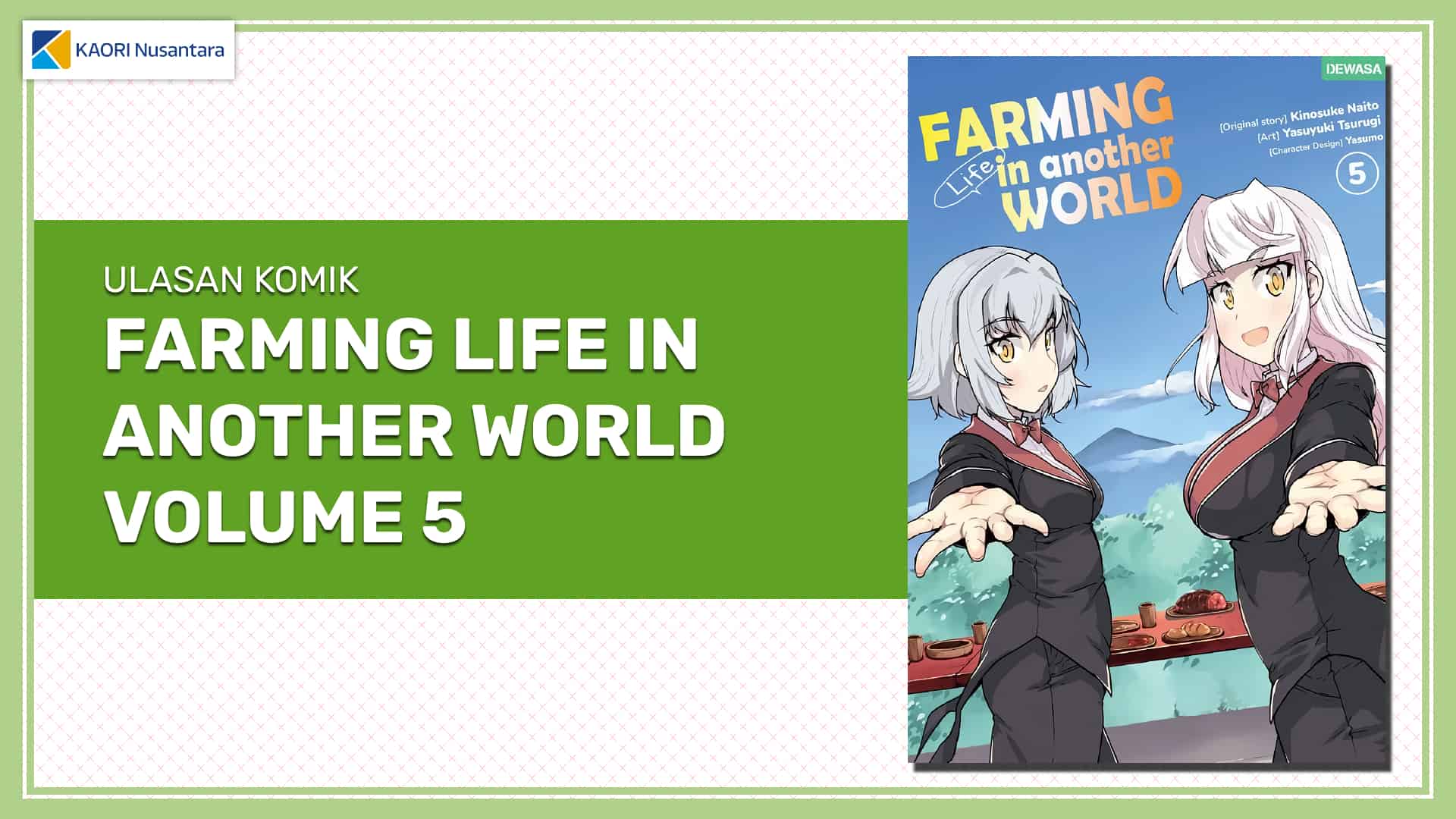 Komik Farming Life in Another World diterbitkan di Indonesia pertama kali oleh penerbit Phoenix Gramedia Indonesia pada tahun 2024. Volume kelima terbit pada tanggal 5 Mei 2025 dan dibanderol seharga 65.000 rupiah (untuk Pulau Jawa). Inilah ulasan volume kelima dari komik Farming Life in Another World.
