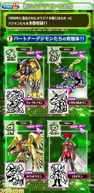 Laman Famitsu merilis beberapa fitur dari Digivice ver.15th ini. Dilansir dari Famitsu, Digivice ini rencananya akan menampilkan 8 Digimon yang dapat dimainkan yakni Agumon, Gabumon, Biyomon, Palmon, Tentomon, Gomamon, Patamon, dan Gatomon. Ke-8 Digimon tersebut juga memiliki versi digivolutionnya masing-masing.