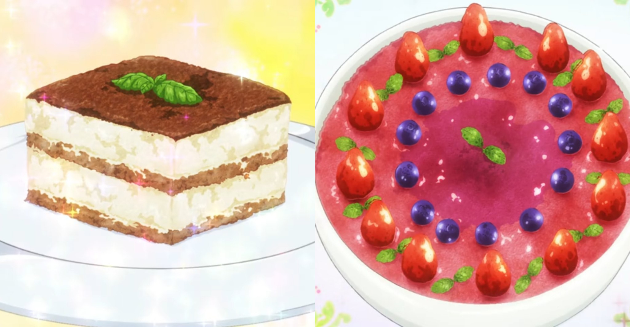 Sebagai penutup, anime ini juga menampilkan dessert klasik Italia seperti tiramisu dan zuppa inglese. Kehadiran hidangan penutup ini melengkapi gambaran pengalaman makan ala Italia yang utuh, dari hidangan utama hingga dessert.