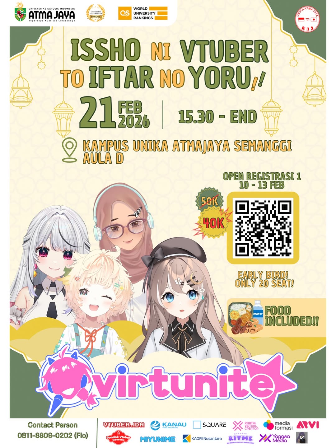Pada 10 Februari 2026, UNIKA Atma Jaya melalui K3J UNIKA Atma Jaya bekerja sama dengan Virtunite Indonesia mengumumkan bahwa mereka akan menyelenggarakan acara komunitas bertajuk Issho ni VTuber to Iftar no Yoru atau singkatnya V-Iftar. Acara ini akan diselenggarakan pada 21 Februari 2026 dari pukul 15:30 WIB di Aula D, Kampus UNIKA Atma Jaya Semanggi, Jakarta.