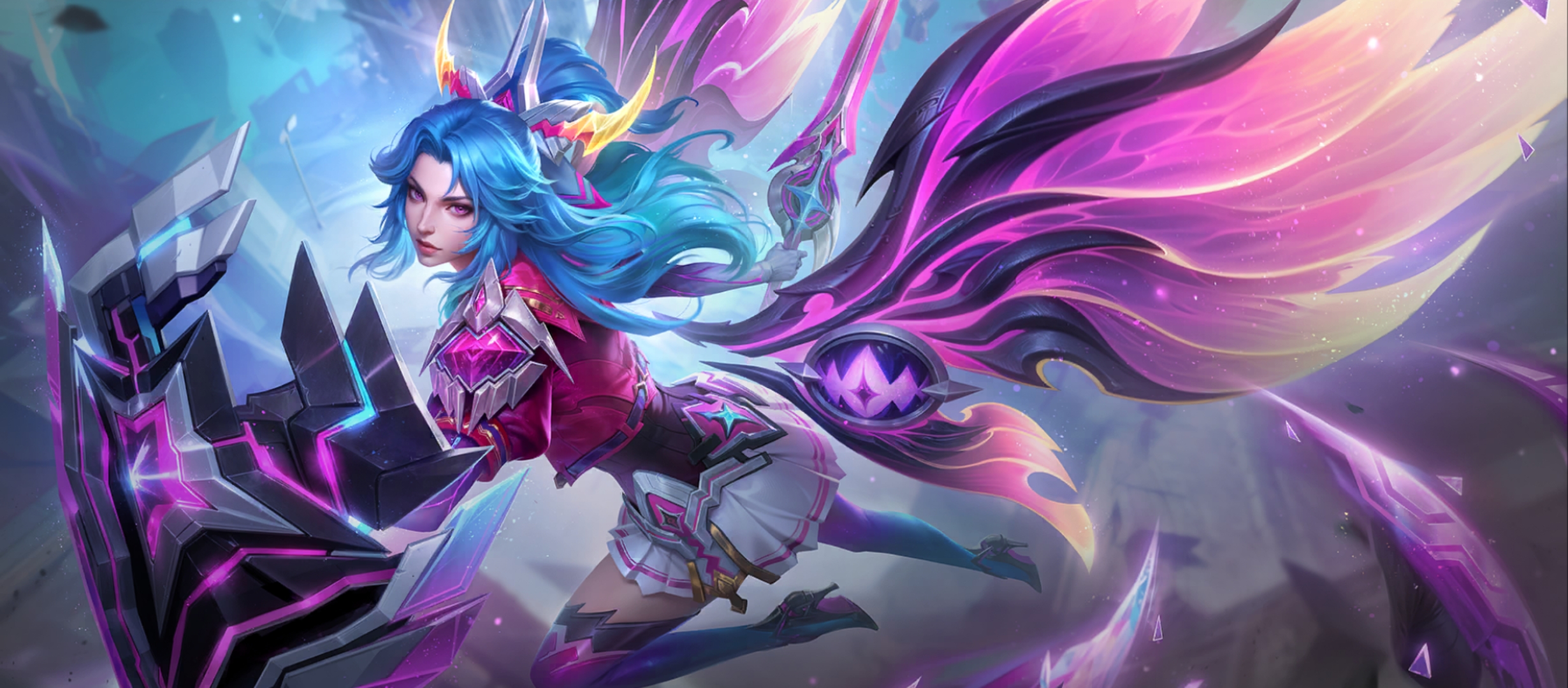 Ultimate – Valkyrie Descent: Saat Freya berubah, aura di sekelilingnya meledak dengan partikel bintang. Shield yang ia dapatkan kini memiliki pola geometris suci yang melingkari tubuhnya, membuat lawan pasti berpikir dua kali untuk mendekat.