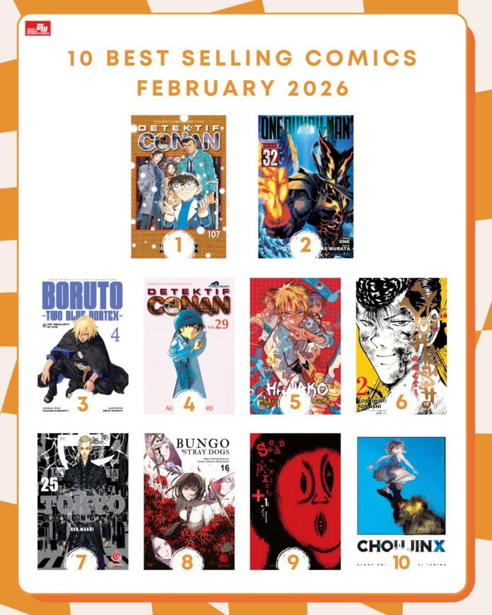 Melalui akun media sosialnya, penerbit Elex Media Komputindo telah memublikasikan judul-judul komik best seller terbitan mereka selama bulan Februari 2026. Inilah komik-komik Best Seller Elex Media Februari 2026: