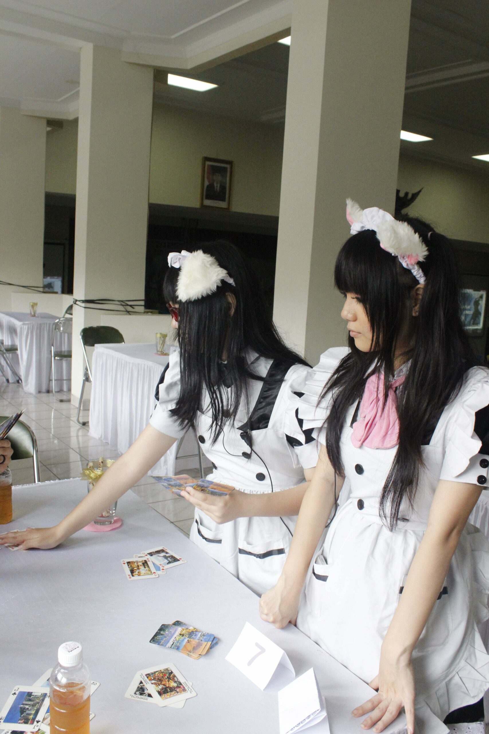 Setelah memesan makanan, para maid akan menemani pengunjung dengan berbagai permainan yang telah disediakan. Uniknya dari permainan-permainan tersebut adalah terdapat ganjaran bagi yang kalah, atau dikenal sebagai Batsu Game. Ganjaran yang disediakan juga sangat menarik, pengunjung harus memilih acak dari angka-angka yang disediakan maid dan angka tersebut akan menentukan ganjaran apa yang akan diterima oleh pengunjung beberapa diantaranya adalah menari bersama maid, bernyanyi, dan sebagainya.