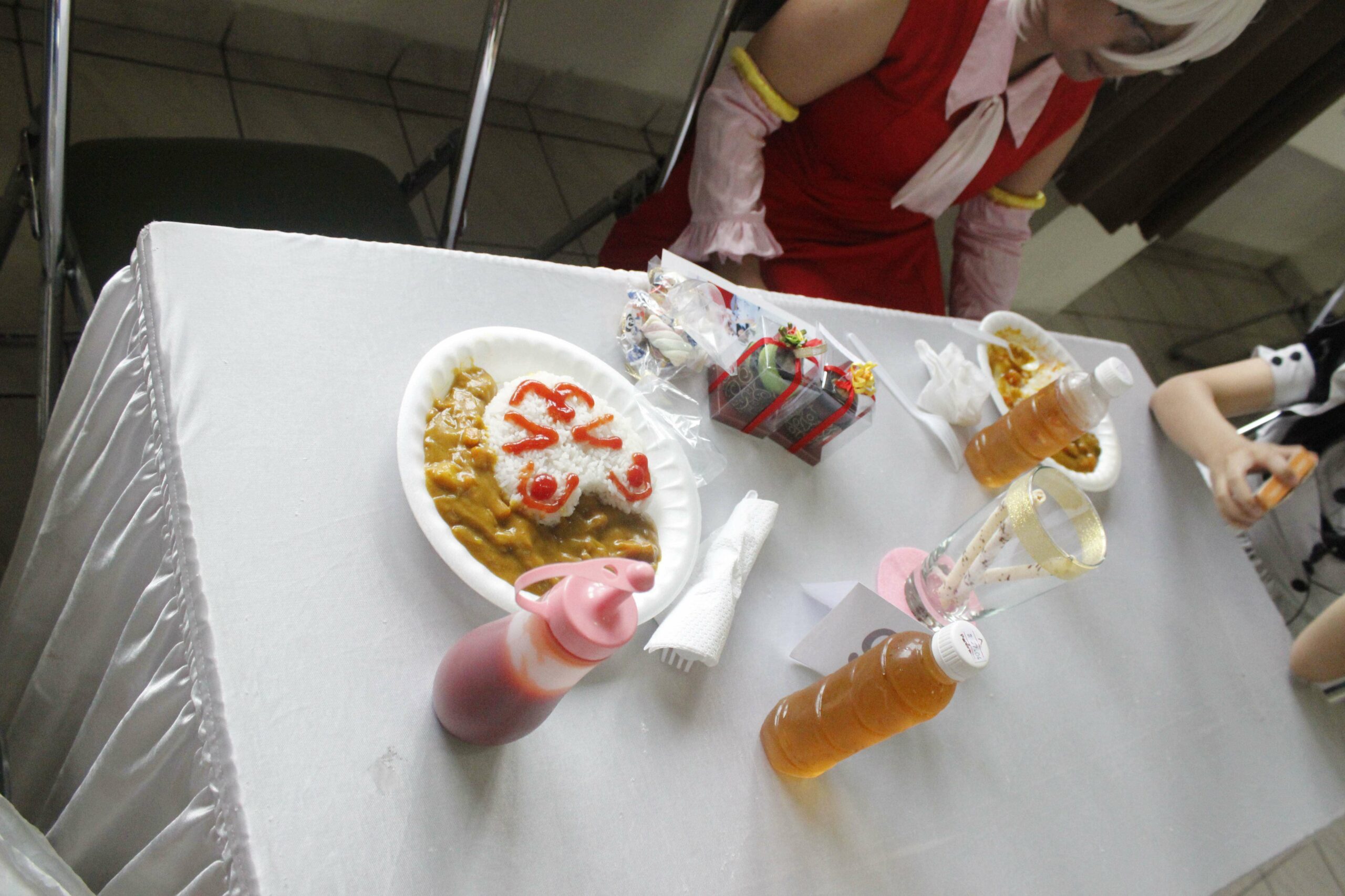 Makanan utama yang disediakan di cafe ini ada 2 macam yaitu Secret Under Blanket (Omurice) dan Puddle of Love (Nasi Kare). Sedangkan untuk minuman yaitu Jus Apel dan air mineral. Ketika makanan datang, maid akan menulis atau menggambar pada makanan yang dipesan dengan tulisan atau gambar yang diinginkan pengunjung. Di sela-sela sesi makan, pengunjung akan diajak oleh maid untuk melanjutkan permainan.