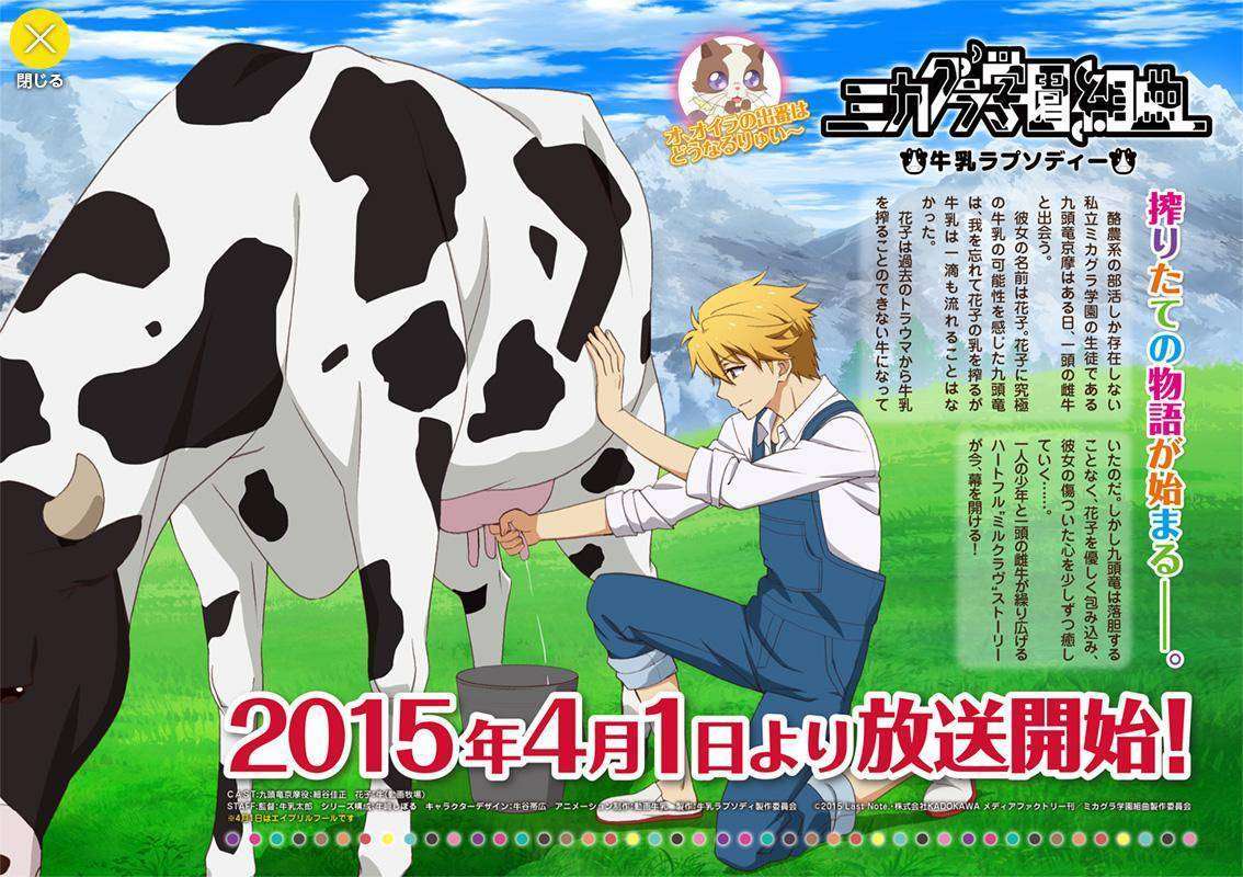 Meski lelucon April Mop ini berkata anime Milk Rhapsody tayang pada tanggal 1 April 2015, namun anime Mikagura School Suite yang sebenarnya akan tayang tanggal 6 April 2015, Senin minggu depan.