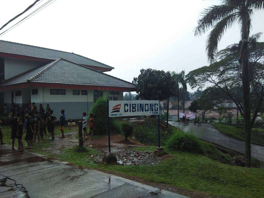Tibalah KRL pada perhentian pertama, stasiun Cibinong (CBN). Stasiun di lintas Nambo sangat menarik karena desain bangunan stasiunnya yang seolah-olah menyerupai vila, “bertingkat” dan terasa “sangat Depok”, mengingatkan stasiun Depok Baru. Saat KAORI tiba, hujan gerimis baru saja reda dan ada pemandangan langka di sini: warga sekitar dan anak-anak yang bermain dengan bebas di wilayah peron stasiun. Peron stasiun ini pun cukup pendek dan kereta terakhir (kereta 8) tidak mendapatkan peron, sehingga petugas tidak bisa turun untuk menutup pintu dan hanya menampakkan kepalanya saja.