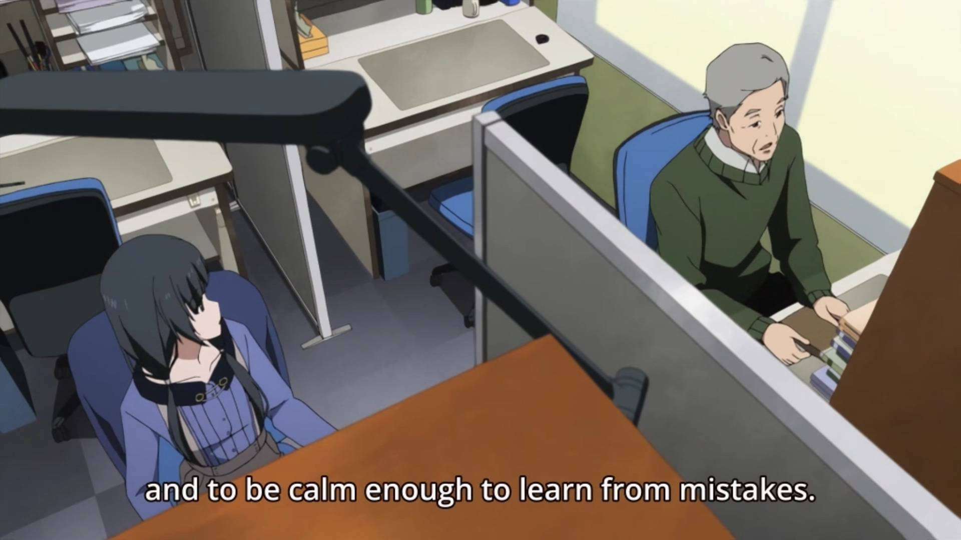 Walau tentu saja hal ini muncul juga dikarenakan isu mendasar pada diri Ema yang terlihat jelas sejak awal, kepercayaan dirinya. Maka pada saat dia mengalami krisis kepercayaan diri, wajar saja apabila Ema merasa ketakutan, khawatir, dan gelisah. Dalam posisi Ema, perasaan-perasaan yang dialaminya sangatlah nyata dan beralasan. Pada akhirnya, berkat bantuan dari Iguchi, Ema berhasil mengatasi konflik internalnya, melampaui dinding pertamanya, dan selanjutnya, kita bisa melihat bagaimana Ema telah tumbuh, baik sebagai animator maupun sebagai manusia. Pada paruh kedua, Ema kembali berurusan dengan masalah kepercayaan dirinya. Namun dengan dorongan dari Sugie…