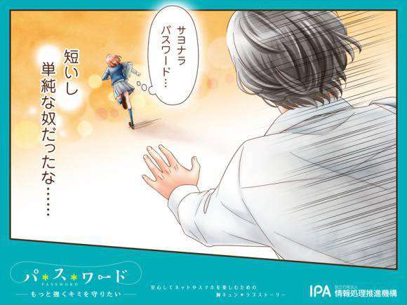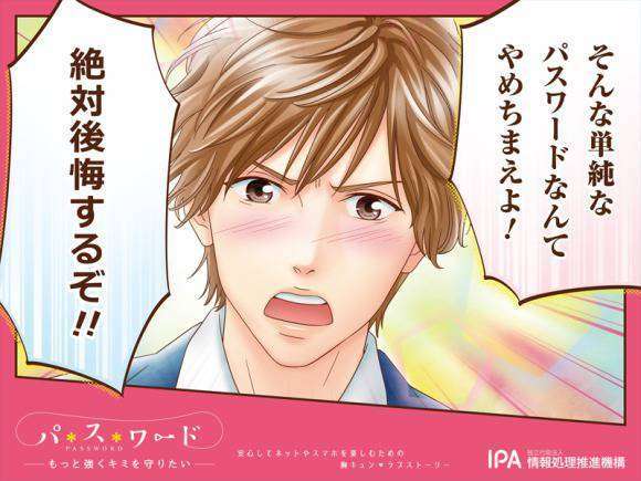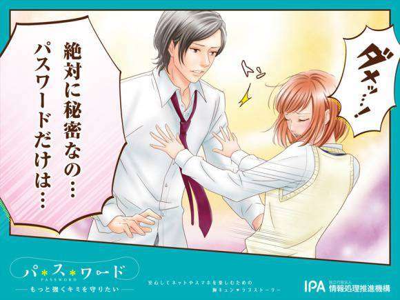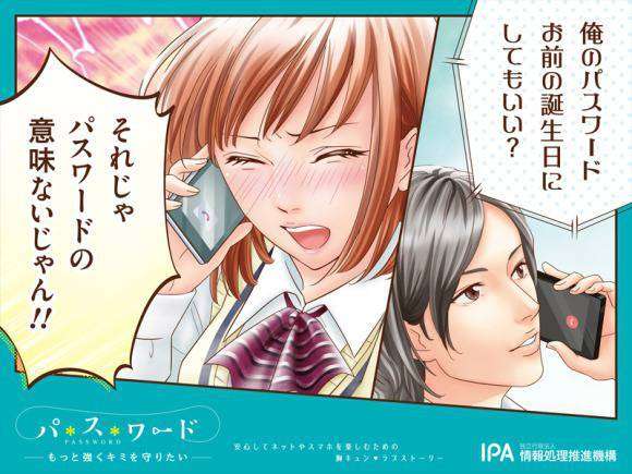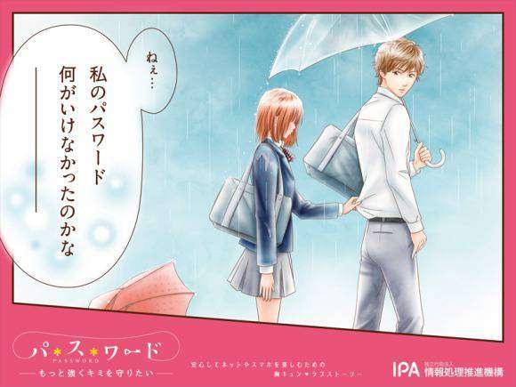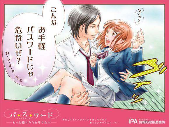 Sebuah agensi administratif yang bergerak secara independen dengan nama The Information-technology Promotion Agency (IPA) mengusung manga shoujo untuk memberikan himbauan mengenai pentingnya menjaga kemanan cyber dengan melindungi password. Uniknya, himbauan mengenai betapa pentingnya password tersebut ditulis seolah-olah bagaikan adegan di komik-komik percintaan. Berikut ini adalah beberapa contoh dari himbauan tersebut: