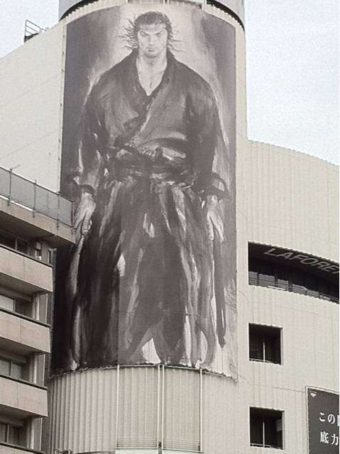 Sebuah mural yang digambar Takehiko Inoue dari karakter utama dari manga Vagabond-nya, yaitu Musashi, telah diletakkan setinggi beberapa lantai dan diplester di menara toko di Tokyo pada hari Minggu. Dengan tinggi 18,2 meter dan lebar 10,3 meter, lukisan samurai ini lebih besar daripada ukuran Gundam setinggi 18 meter.