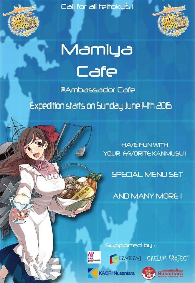 Mamiya Cafe akan digelar pada bulan Juni mendatang di Jakarta. Kafe yang dinamakan sesuai dengan game KanColle ini akan diadakan di Ambassador Cafe, Bulungan, Jakarta Selatan.