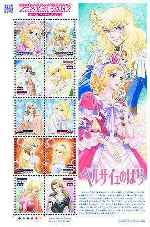 Seri perangko anime ini sudah ada sejak tahun 2005 dan The Rose of Versailles mendapat kehormatan menjadi anime ke-20 yang dimasukkan ke seri perangko anime tersebut. Serial anime lainnya yang sudah dibuat perangko antara lain Fushigina Merumo karya Osamu Tezuka, Naruto and Naruto Shippuuden, Neon Genesis Evangelion dan Detective Conan/Case Closed Part 1 and Part 2.