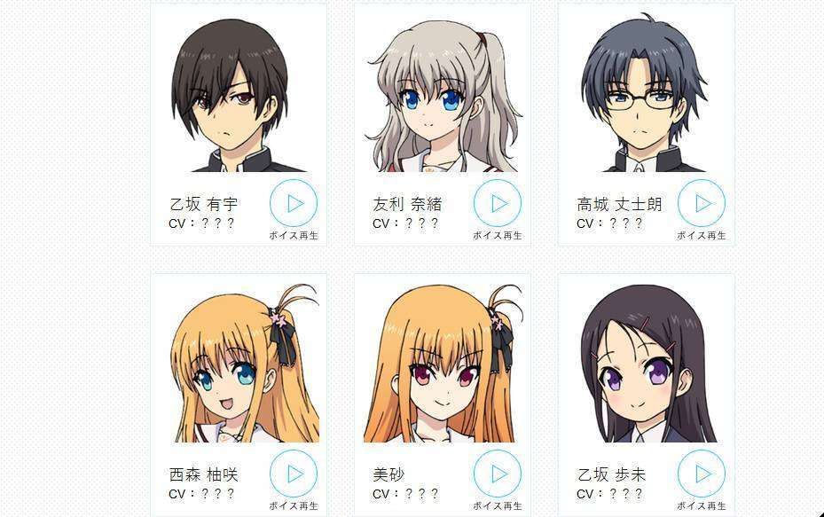 Beberapa waktu lalu disebutkan bahwa Jun Maeda akan kembali merilis seri anime orisinal terbarunya. Setelah Angel Beats, kali ini Jun Maeda akan kembali dengan seri anime orisinal berjudul Charlotte. Beberapa waktu lalu melalui laman resminya telah dirilis sampel suara dari para karakter di seri anime ini.