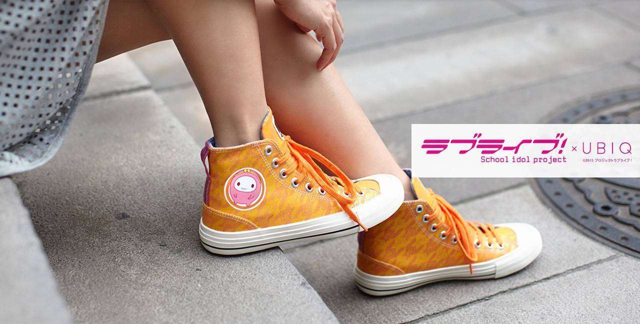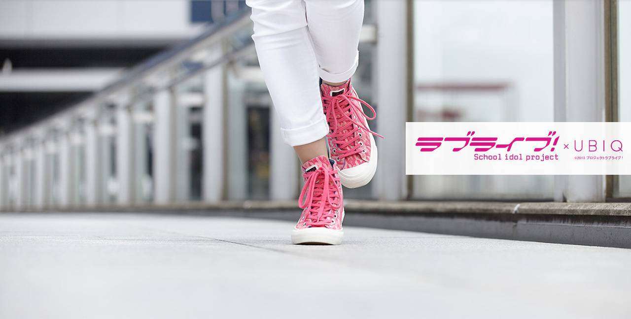 Kali ini, salah satu produsen sneakers ternama, Ubiq berkolaborasi dengan seri anime Love Live! School Idol Project untuk memproduksi sneakers khusus bertemakan anime idola yang satu ini. Masing-masing sepatu ini memiliki desain yang menunjukkan ciri khas ke-9 anggota grup idola u’s baik dari warna maupun kesukaan masing-masing karakter tersebut.