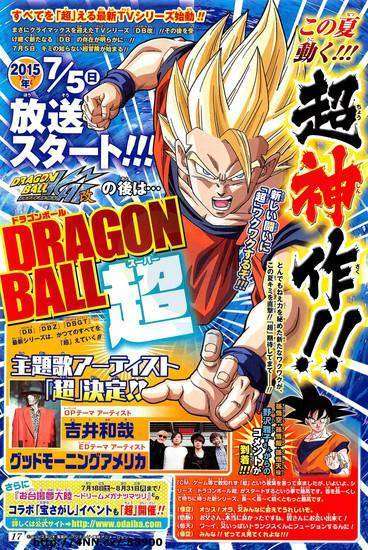 Majalah Shonen Jump mengumumkan bahwa serial anime terbaru DragonBall yang bertajuk Dragon Ball Super akan mulai mengudara di Jepang pada 5 Juli 2015.