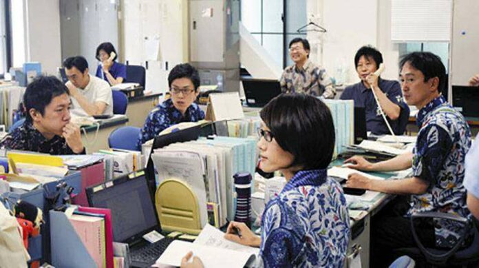 Kali ini ada fenomena menarik dari Cool Biz di Jepang. PNS di prefektur Yamanashi, khususnya yang bekerja di bagian hubungan internasional, menggunakan batik Indonesia sebagai pakaian kerjanya.