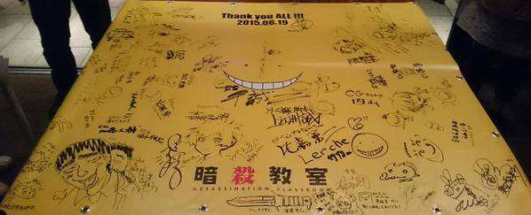 Selain itu akun twitter tersebut juga mengunggah berbagai foto para staf dan pengisi suara yang merayakan penayangan episode akhir seri anime Assassination Classroom. Seraya dengan foto-foto tersebut juga diucapkan ucapan terima kasih pada seluruh pihak yang mendukung penayangan seri anime tersebut.