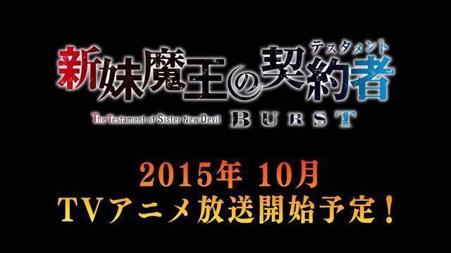 Sebelumnya telah dikabarkan bahwa seri anime Shinmai Maou no Testament akan berlanjut ke musim kedua. Musim kedua seri anime ini nantinya akan memiliki judul Shinmai Maou no Testament Burst. Terkait perilisan musim kedua ini, laman resmi seri anime tersebut telah merilis berbagai informasi dan detail terkait musim keduanya.