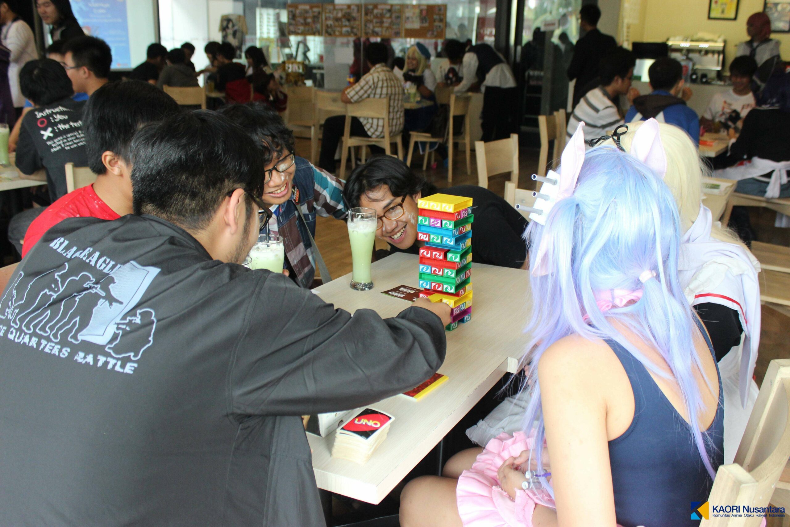 Terlihat banyak permainan yang dilakukan oleh para kanmusu dan para teitoku yang hadir. Mulai dari bermain kartu UNO, hingga menyusun Jengga terlihat di berbagai meja Mamiya Cafe ini.