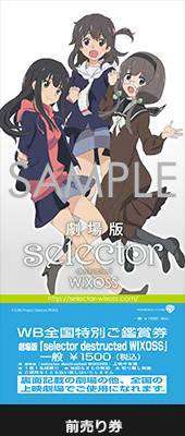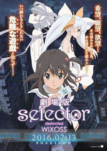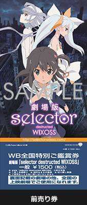 Jika tidak ada halangan, film Selector Destructed Wixoss rencananya akan mulai diputar di jaringan bioskop di Jepang pada tanggal 13 Februari 2016 mendatang. Tiket film ini akan dibanderol dengan harga 1.500 Yen (sekitar Rp180.000). Bagi para pembeli tiket ini akan berkesempatan mendapatkan bonus berupa kartu promo yakni kartu Arts bernama Arc Destruction. Kartu promo ini akan dirilis dalam balutan holographic foil.