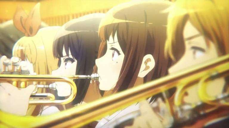 Ongaku (musik) dan seishun (masa muda): dua kata itulah yang ditonjolkan dalam trailer-trailer yang mempromosikan penayangan anime ini. Dan karya terbaru Kyoto Animation ini benar-benar menghadirkan apa yang dijanjikan. Adaptasi novel karya Ayano Takeda ini mengangkat satu sisi dari kehidupan sekolah yang sarat drama, yaitu perjuangan orkes tiup1 SMA Kitauji untuk mencapai kompetisi orkes tiup nasional2. Orkes tiup sekolah itu sedang dalam kondisi payah, tapi sekarang hadir guru pembimbing baru yang melatih mereka dengan lebih tegas dan ketat. Kisah dramatis tersebut dipadukan secara piawai dengan penggambaran penampilan bermain musik ansambel yang indah dari sisi musik maupun visual. Hasilnya adalah pengalaman menonton yang memanjakan dan menggugah indra dan emosi.
