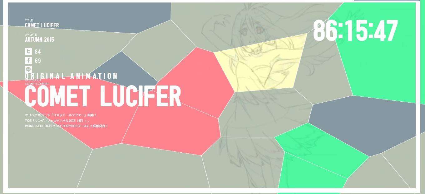 Bandai Visual baru saja meluncurkan situs untuk anime orisinil buatan mereka yang diberi judul Comet Lucifer. Situs ini berisikan rangkaian potongan animasi mentah dari seorang perempuan, hitungan mundur menuju hari Minggu, 26 Juli 2015 dan tulisan musim gugur 2015.