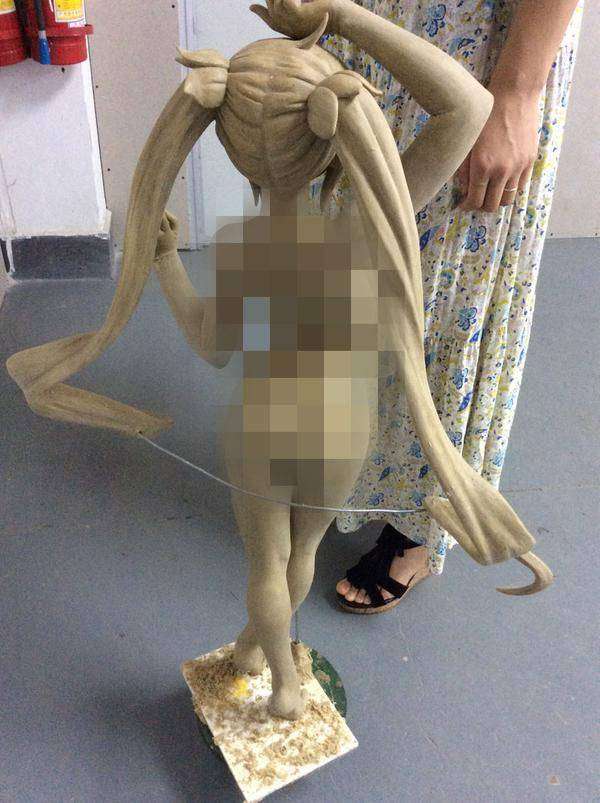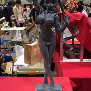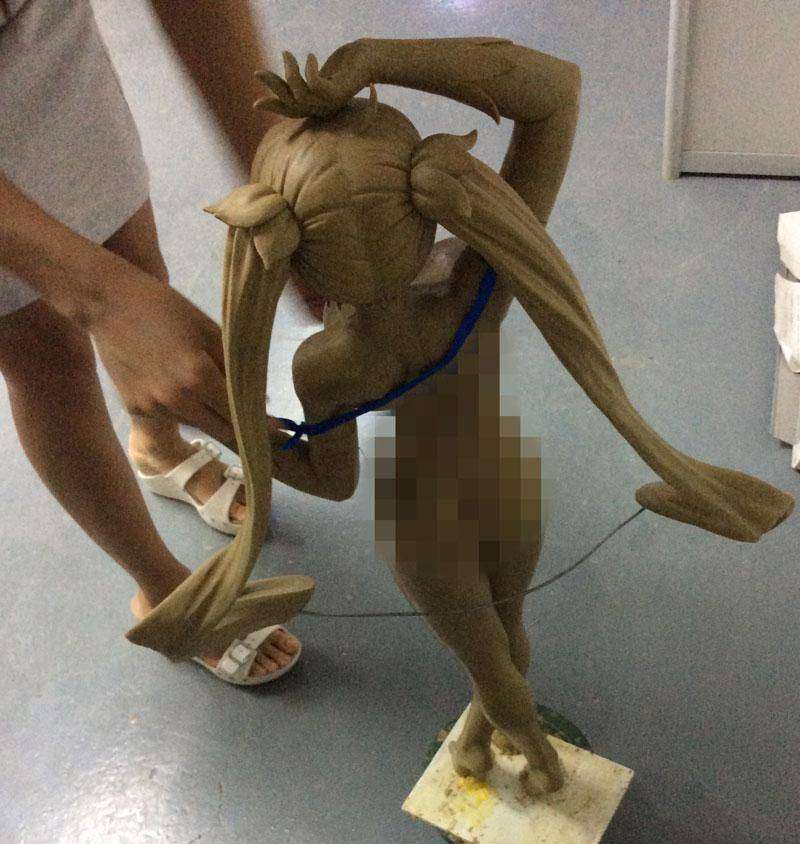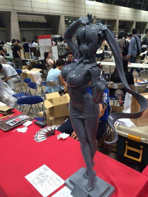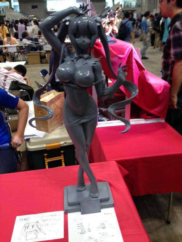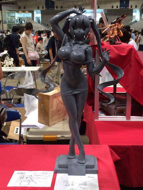 Dibuat oleh sebuah circle doujin asal Jepang @KEUMAYA, figur ini awalnya sempat diperlihatkan versi setengah jadinya pada bulan Mei lalu dengan tinggi 70 cm sebagaimana foto-foto di bawah ini: