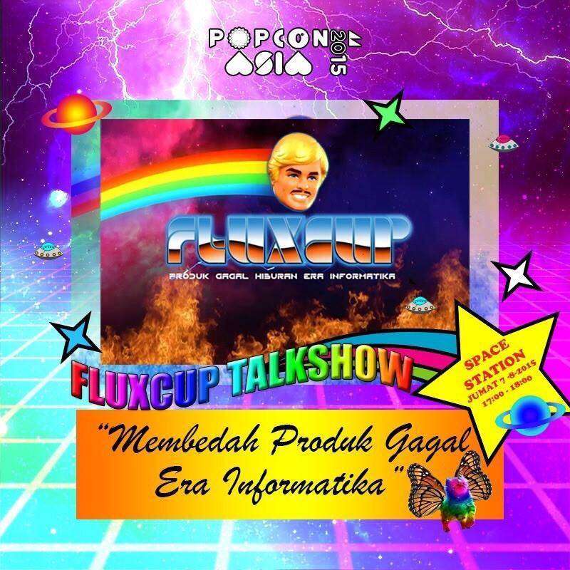 Tidak hanya sekedar hadir saja, Fluxcup Channel rencananya juga akan mengadakan sebuah talkshow yang bertajuk “Membedah Produk Gagal Era Informatika”. Talkshow ini akan berlangsung pada hari pertama Popcon Asia 2015, yakni Jumat 7 Agustus 2015 mulai pukul 17.00 – 18.00 WIB.