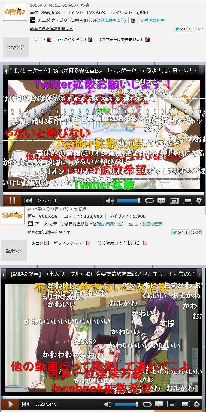 Di Nico-Nico Douga, sebelum sampai pada angka tersebut, para fans pun dengan antusias menyambut datangnya angka 1 juta dengan berbagai macam komentar, bahkan mengatakan akan segera memberi linknya ke Twitter agar segera menembus satu juta. Sayangnya, penayangan Gakkou Gurashi secara resmi di Nico Nico Douga hanya bisa dilakukan dari Jepang.