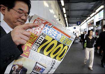 Mitsushi Akao, dosen jurnalisme di Universitas Meiji, menyatakan koran tidak terlalu tertantang dengan keberadaan situs berita Internet yang belum terlalu berkembang.