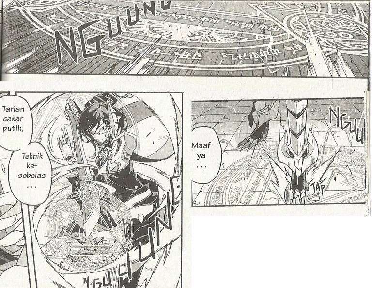 Membaca aksara Sunda yang ada di lingkaran-lingkaran sihir di komik ini lebih sulit karena beberapa faktor seperti ukuran yang kecil, atau terhalang efek suara. Tapi dengan sedikit upaya, sebagian dari tulisan di lingkaran sihir tersebut masih dapat dibaca.