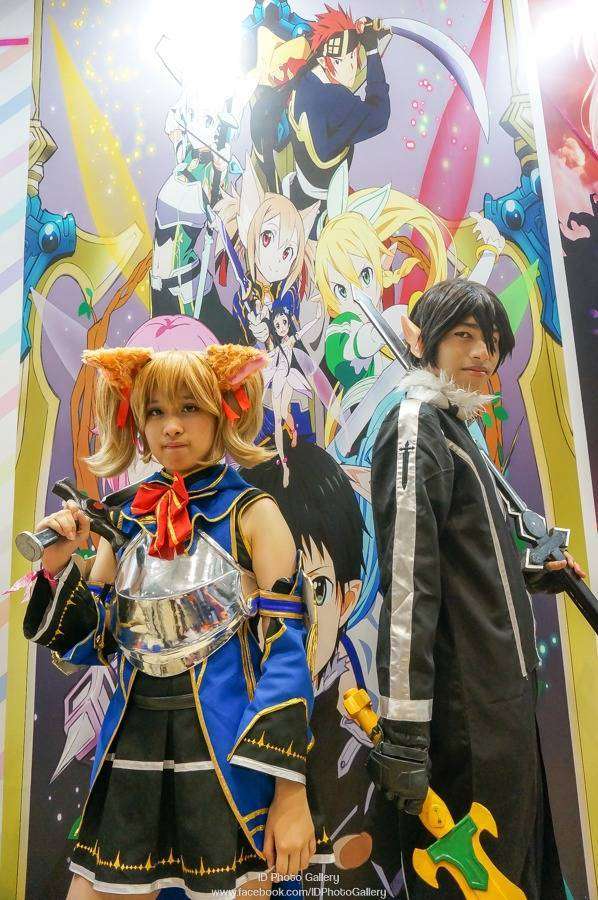 Kirito dan Silica berpose di backdrop Sword Art Online Season 2