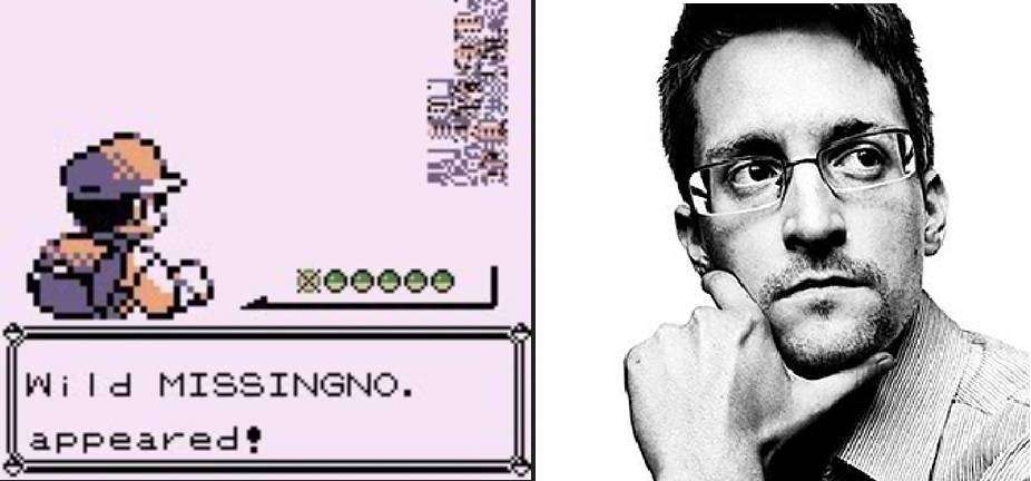 Menariknya, jawaban Snowden tersebut merujuk pada nama dari sebuah Pokemon tidak resmi yang dapat ditemui di game Pokemon Red dengan satu cara khusus. MissingNo bukanlah sebuah Pokemon melainkan sebuah glitch di program game Pokemon generasi pertama. MissingNo dapat muncul karena adanya kesalahan pada variabel di game tersebut.
