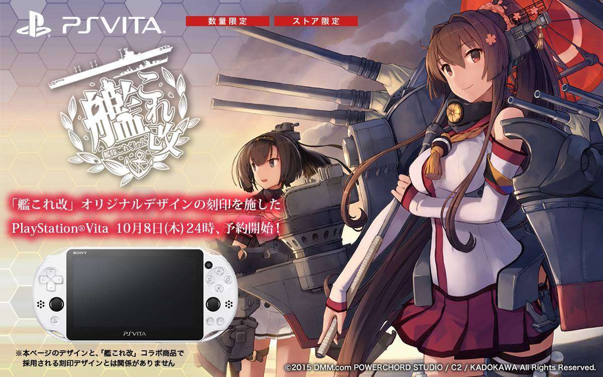 Dikabarkan juga bahwa pemesanan PSVita edisi terbatas versi Kancolle Kai telah dibuka. PSVita edisi ini tak hanya memiliki desain bertemakan Kancolle Kai, namun juga tampilan tema dan sleeve khusus bertemakan Kancolle Kai.