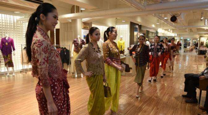 Para undangan yang sebagaian besar berasal dari kalangan Jepang dan kedutaan asing, tampak terpukau menyaksikan lenggak-lenggok model yang memperagakan desain-desain batik dan kebaya ini.