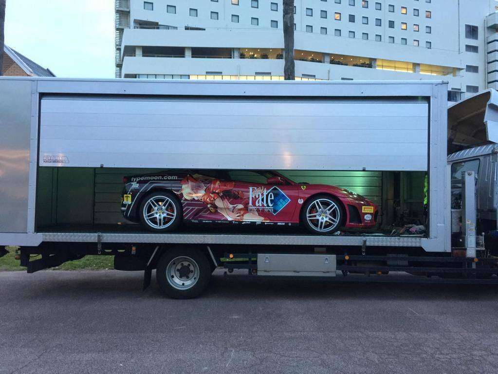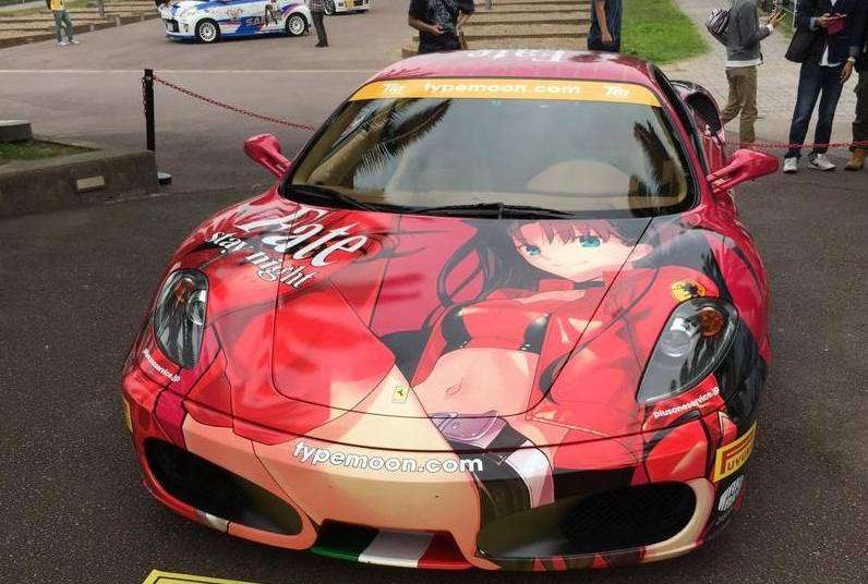 Livery itasha yang terdapat pada mobil Ferrari F430 ini (model mobil yang pertama kali dirilis di tahun 2004, bersamaan dengan tahun perilisan novel visual Fate/stay night) dihadirkan oleh PlusOne, salah satu toko pernik anime. Selain itu, mobil ini juga ditandatangani oleh Takashi Takeuchi, ilustrator yang mengerjakan ilustrasi di novel visual Fate/stay night. Tak hanya oleh cosplayer Rin dan Saber, dua pengisi suara dari seri Fate/stay night, yaitu Junichi Suwabe (Archer) dan Kana Ueda (Rin) juga turut hadir.