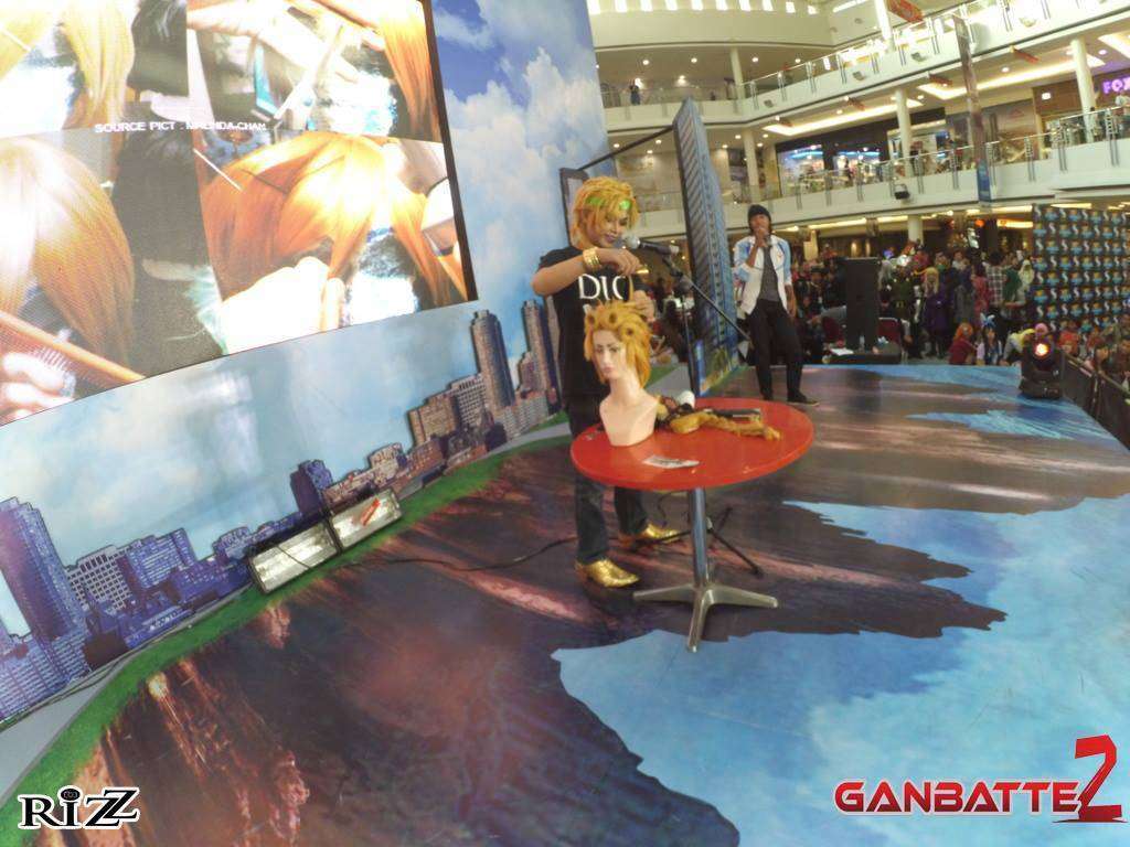 Selanjutnya, salah satu cosplayer tamu di acara ini, Taqi, membagikan ilmunya mengenai tips dan trik styling wig untuk cosplayer. Dengan piawai, Taqi menjadikan wig pirang biasa menjadi rambut Giorno Giovanno.