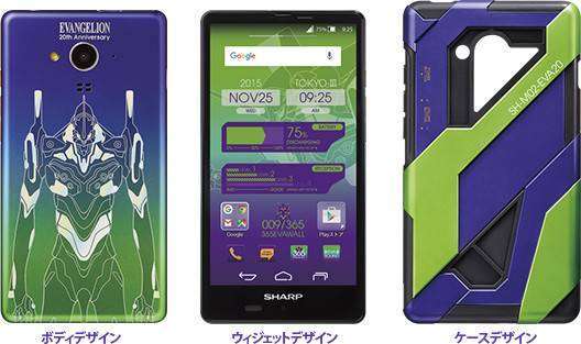 Penantian penggemar Evangelion terhadap wujud dari ponsel pintar spesial bertema serial anime ini akhirnya mulai terjawab. Ponsel pintar yang dibuat dalam rangka merayakan 20 tahun serial anime Evangelion tersebut akan diproduksi oleh Sharp. Desain ponsel ini menghadirkan bodi serta tampilan antar-muka dengan warna ungu dan hijau yang khas lengkap dengan ilustrasi dari mecha EVA-01. Selain itu, ponsel ini juga akan dilengkapi dengan case tambahan dengan corak warna serupa.