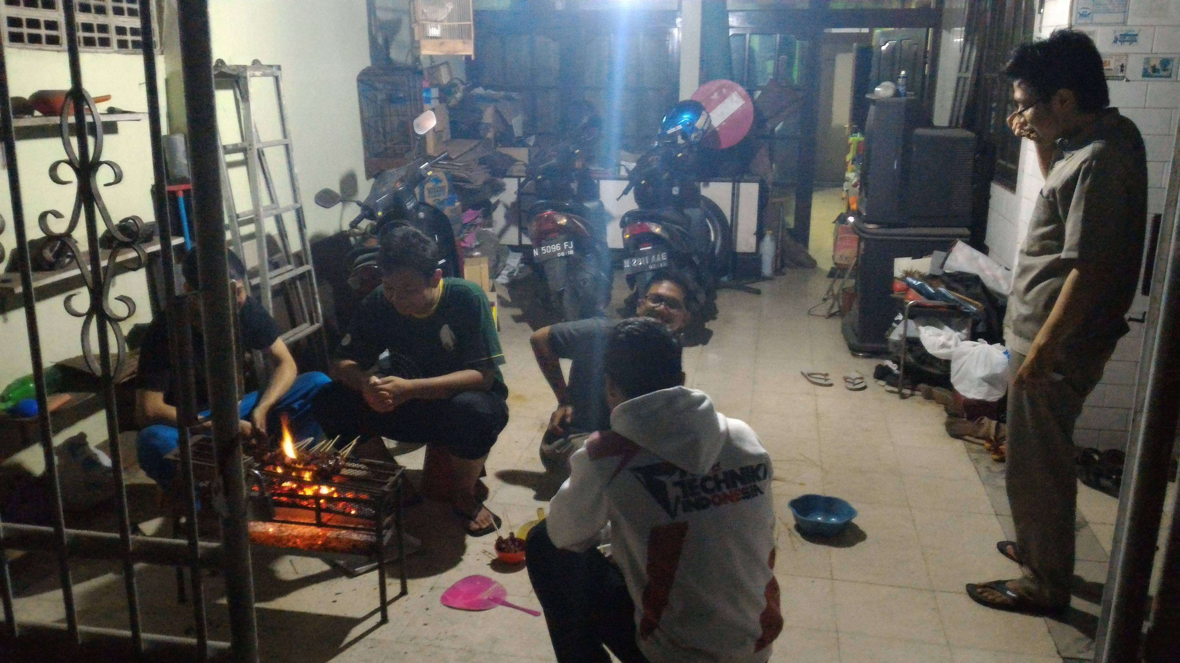 Kegiatan berlangsung dari selepas maghrib. Anggota yang telah terkumpul adalah anggota Faid, anggota Dimdim selaku tuan rumah dan Direktur Komunitas Ronal. Langsung saja kami membagi tugas, Ronal dan Faid mempersiapkan daging untuk disate, Dimdim mempersiapkan bumbu dan Naufal menyiapkan pembakaran sate di pelataran rumah. Namun, karena Naufal orangnya udik maka terpaksa ganti pos, Dimdim di pembakaran dan Naufal di bumbu.