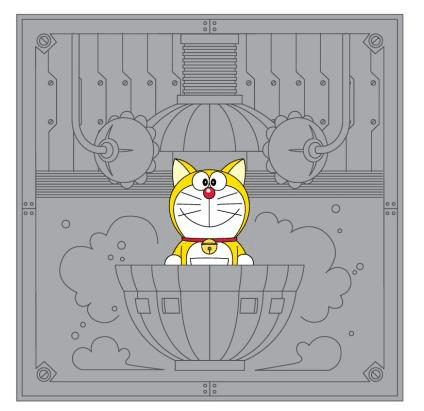 Doraemon “dilahirkan” di dalam pabrik dalam keadaan bertelinga dan berwarna kuning