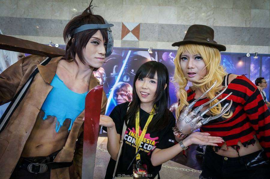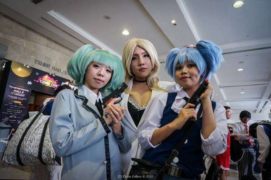 Salah satu Guest dari Indonesia Comic Con, V-Project Cosplay Group dari Hongkong. Luffy, Olivie dan MiyabiJoker dan Harley Queen terlihat di Indonesia Comic Con 2015Joker dan Batman tumben akur nih? xDPasukan dari GATE : Jietai juga terlihat di dalam area Indonesia Comic Con 2015Lagi pada liburan nih Cast MGS 5 ke Indonesia Comic Con 2015?Genos dan Sonic juga ada di Indonesia Comic Con 2015? Saitama nya ngomong-ngomong kemana ya?Beberapa murid dari Assasination Classroom juga terlihat di Indonesia Comic Con 2015. Apakah Koro-Sensei sedang melakukan tour kesini bersama para muridnya?Kalo Freddy dan Jasonnya seperti ini jadi pilih mau dibunuh mereka atau yang lain ya?